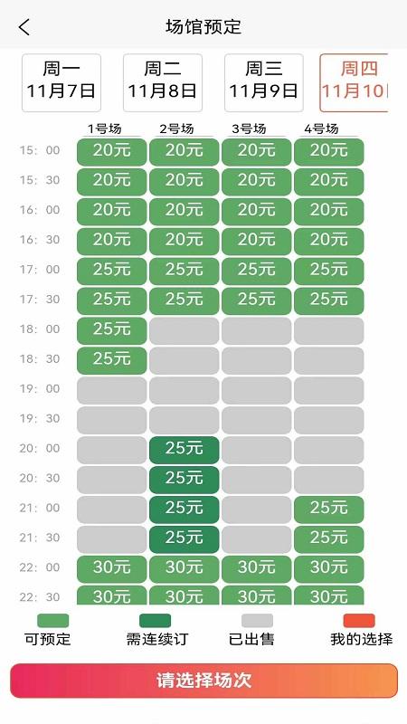 通过直连各球馆本地管理系统,拥有实时数据。可以像在线电影订票系统一样选馆选场地。